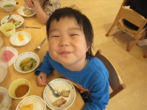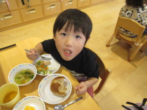 たくさん遊んだり運動した後はおいしい給食が待ち遠しいゆり組さん。