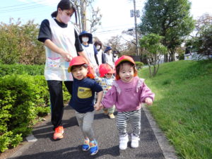 散歩の時もお友達と仲良く手を繋いで歩けます。